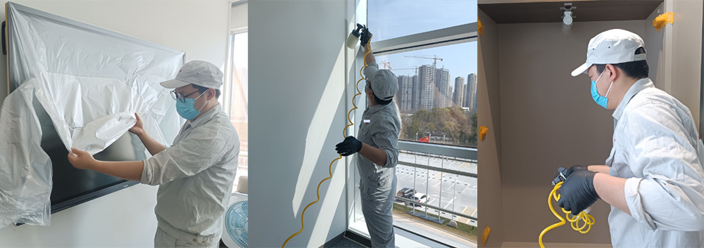 3月2日、1,117平方メートルのオフィス全域に対し、高度な光觸媒施工処理を実施。完工後の再測定では全數(shù)値が基準適合を達成。特にTVOC最大値は9.925mg/m³から0.5mg/m³へ2000%の改善率を示しました。