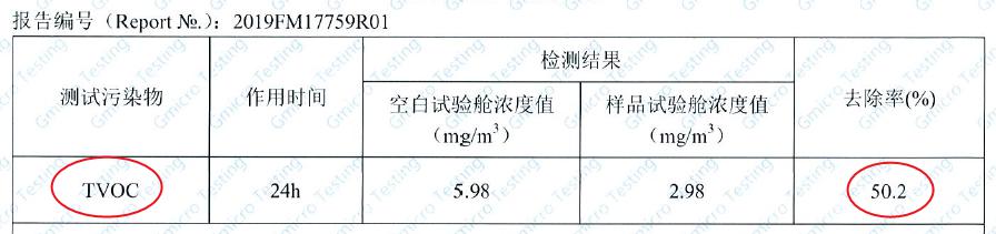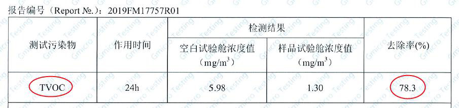 第三方實驗室對TVOC捕捉劑效果測評